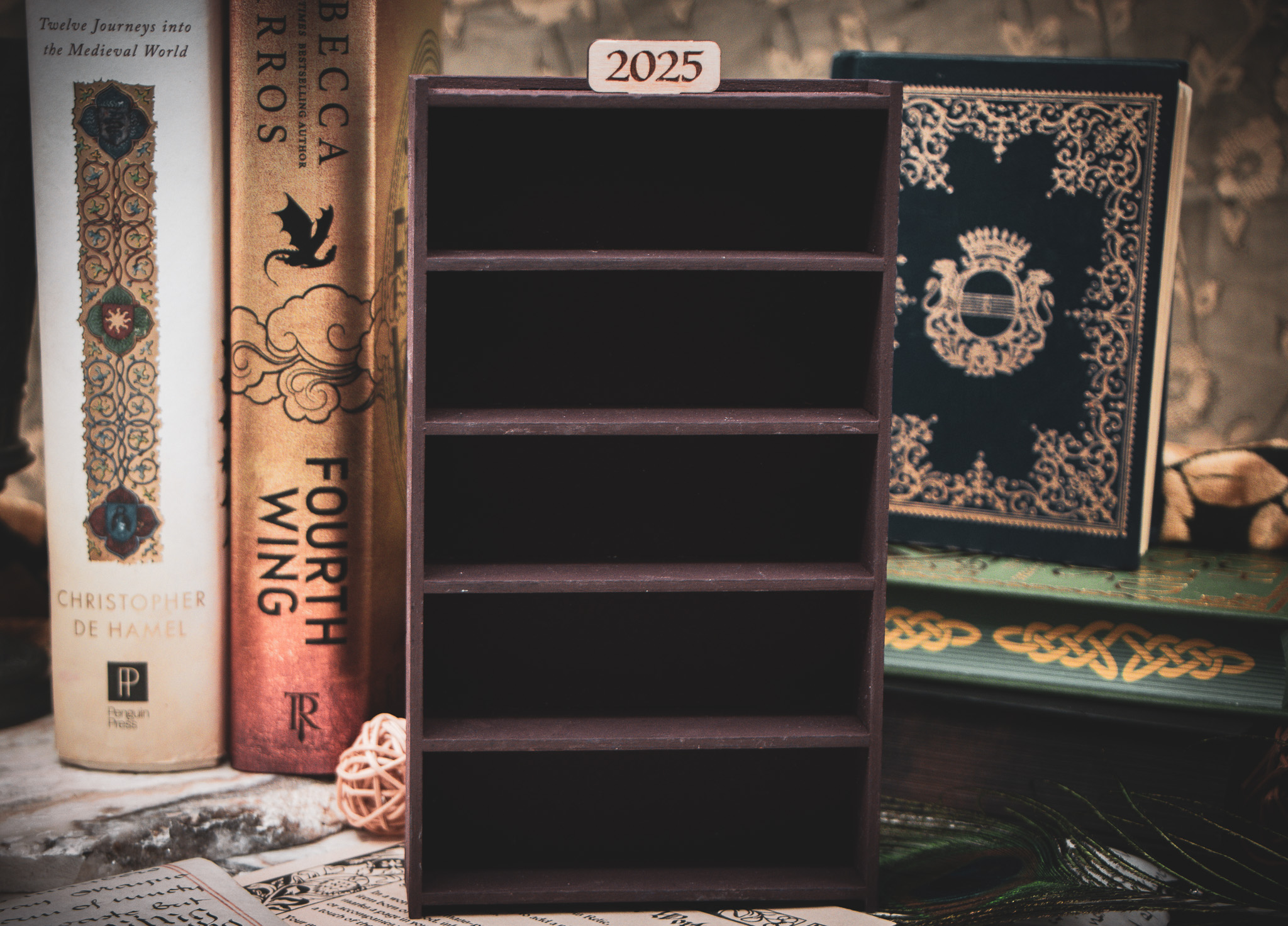 Every great journey deserves a monument. Construct your own pocket-sized scriptorium to house the titles that have shaped your year.